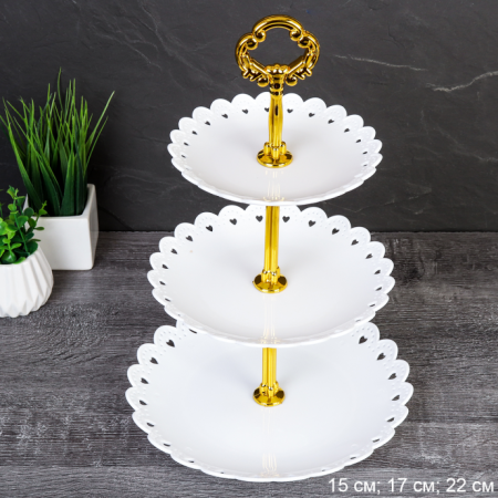 Фруктовница 3-х ярусная Круг Белая пластик/D-1244/ф/ ГТ