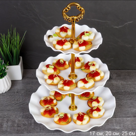 Фруктовница 3-х ярусная Волна Белая пластик/D-1269/ф/ГТ