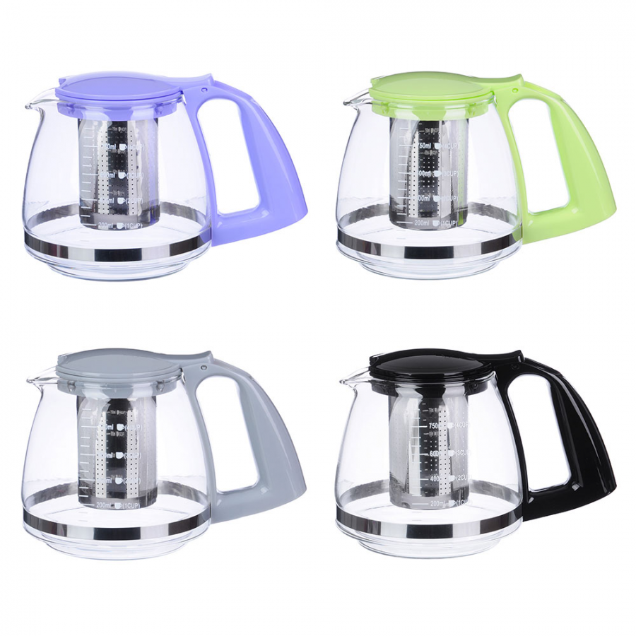 Чайник заварочный 750мл с ситечком нерж сталь стекло 4цвета/ф/ VETTA