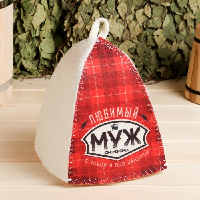 Шапка банная с термопечатью ЛЮБИМЫЙ МУЖ /Красный фон/ Доляна