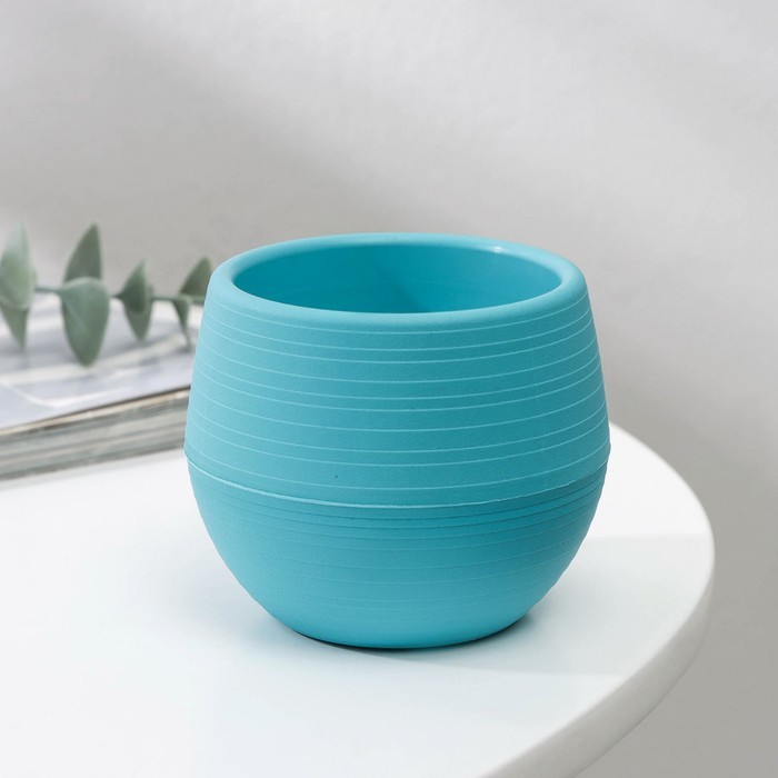Кашпо ЯПОНИЯ 125мл d8*h6,5 с поддоном БИРЮЗОВЫЙ /ф/Доляна