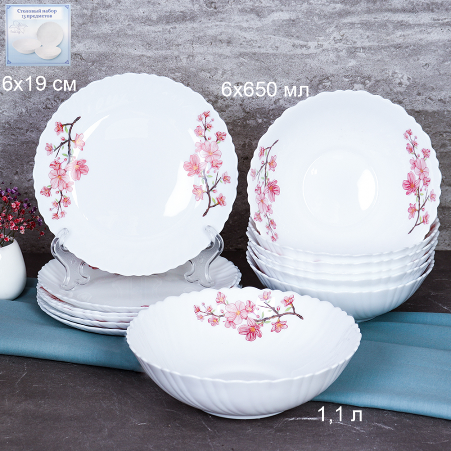 Столовый набор 13 предметов САКУРА Стеклокерамика /13/7578/XN (7196)/ф/ГТ