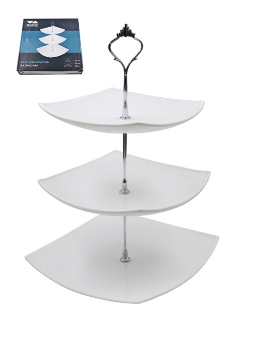 Ваза для фруктов 3-х ярусная WHITE Стеклокерамика 21,5см 23,5см 28см FJP3AT/ф/ КК