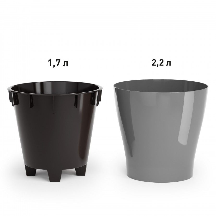 Кашпо Лея 2,2л д162 двойной с автополивом СЕРЫЙ /Альтернатива