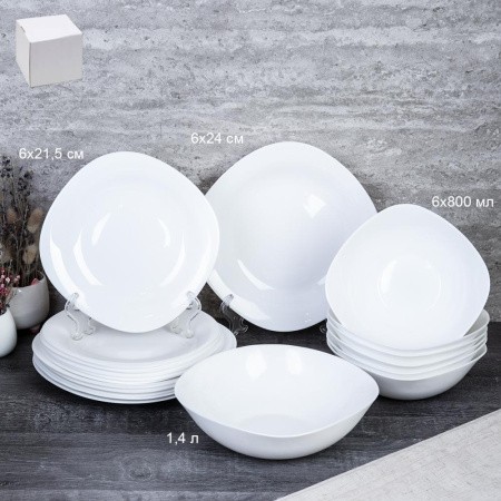 Столовый набор 19предметов Стеклокерамика БЕЛЫЙ квадратный/SQ-19/8595759 (WHITE)/ф/ГТ