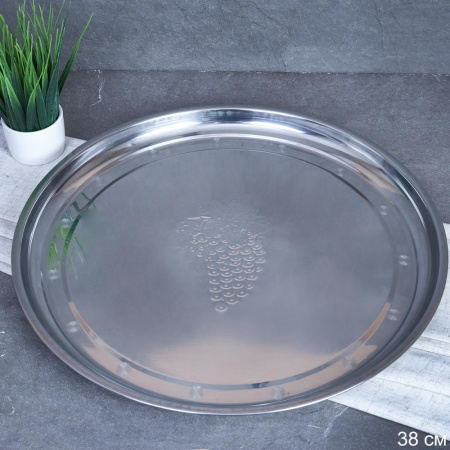 Блюдо 38см металл с декором Виноград/h=2.5/ф/ ГТ