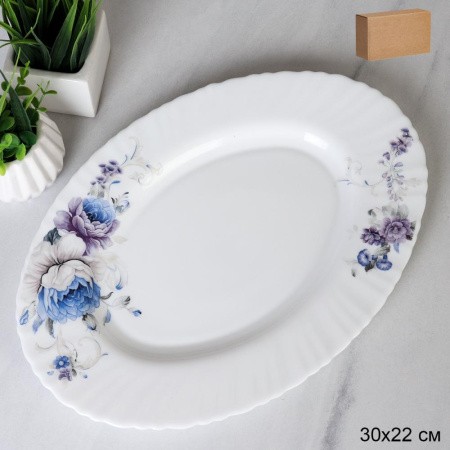 Блюдо овальное 300мм КОБАЛЬТОВАЯ РОЗА Стеклокер/LHYP-120XN/7326/ ф/ГТ