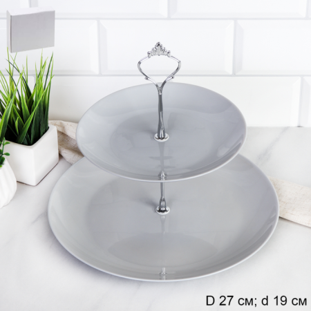 Ваза для фруктов 2-х ярусная СЕРЫЙ ЦВЕТ/GR-FLYGP75/105/ф/ГТ