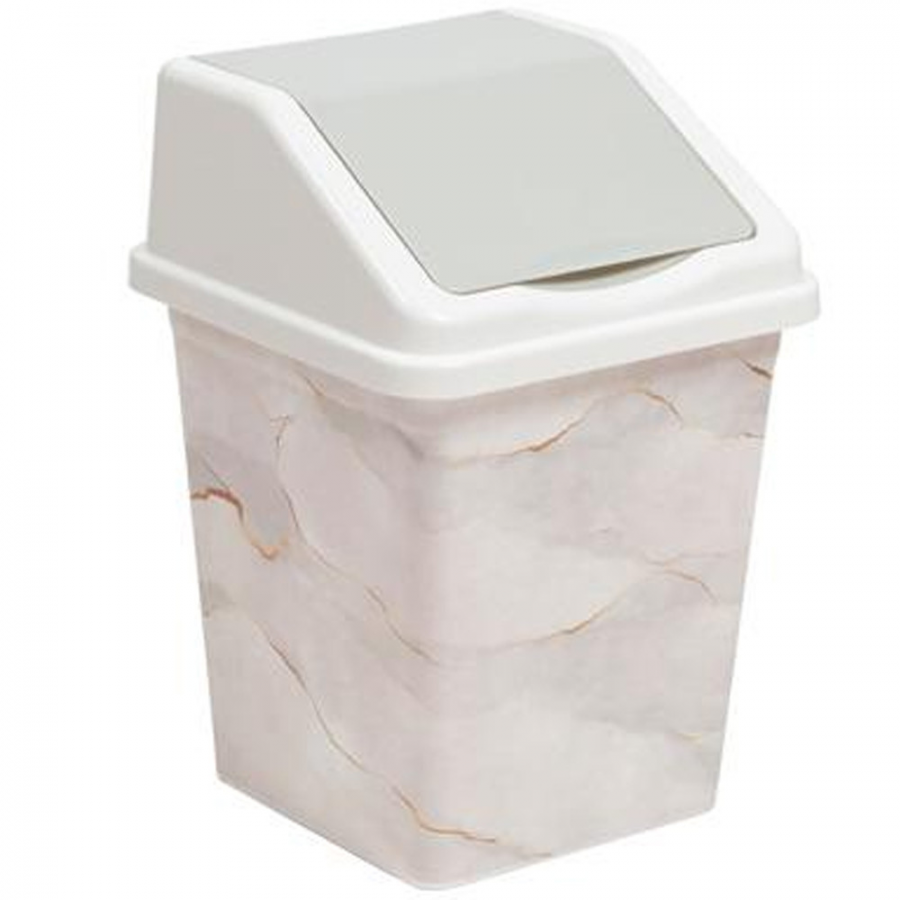 Ведро для мусора 5л квадрат с подвижной крышкой белый мрамор/ф/ Б