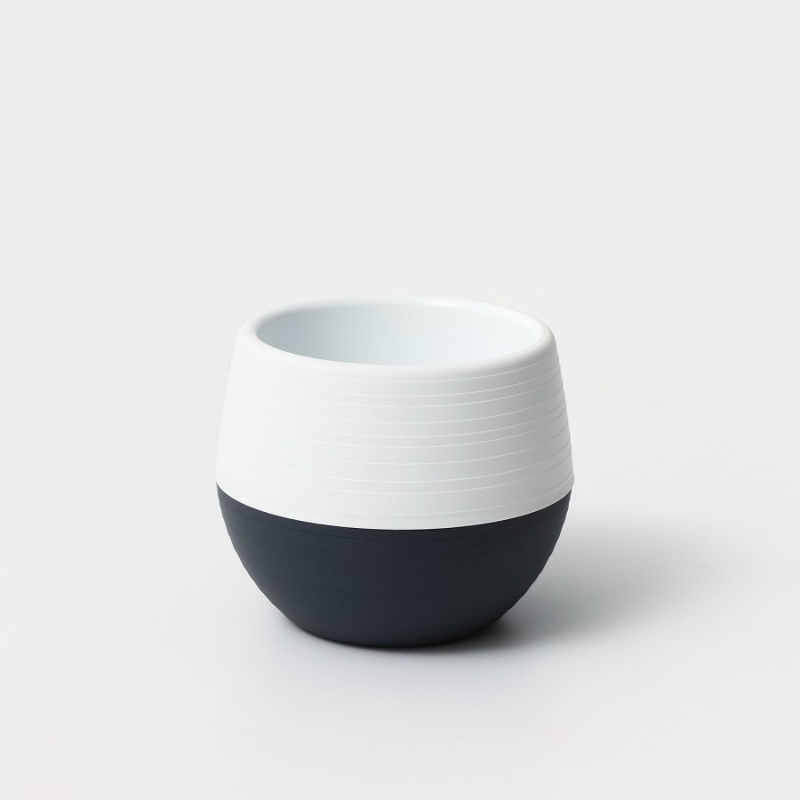 Кашпо ЯПОНИЯ 450мл БЕЛО-ГРАФИТОВЫЙ с поддоном/ф/ Доляна