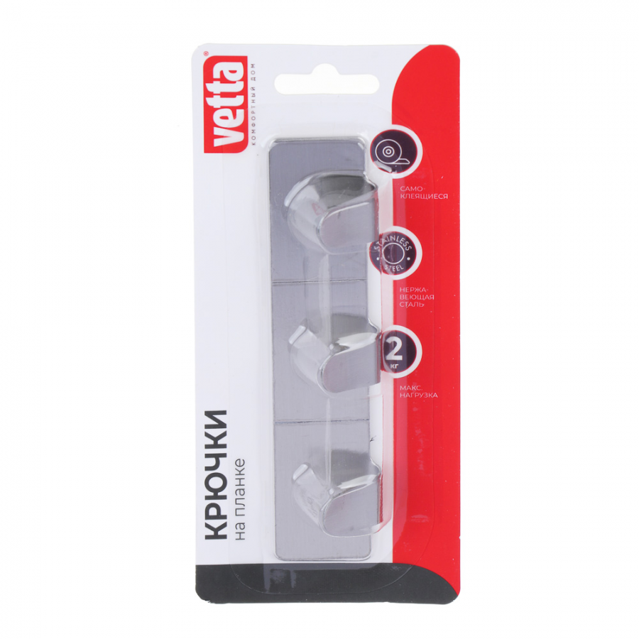 Планка самоклеящаяся 3крючка/2,5х12см/Нерж.сталь 430/ф/VETTA