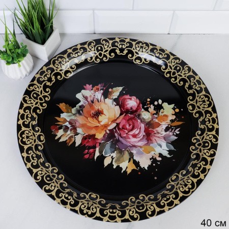 Поднос 40см БУКЕТ металл/MB-154 /ф/ ГТ