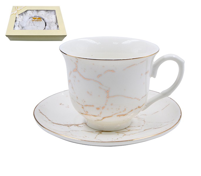 Чайный набор 12предметов Золотой мрамор 220мл фарфор/176-609/ КК/Ф