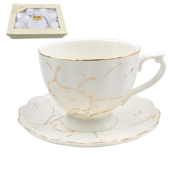 Чайный набор 12предметов Золотой мрамор 220мл фарфор/176-647/ КК/Ф