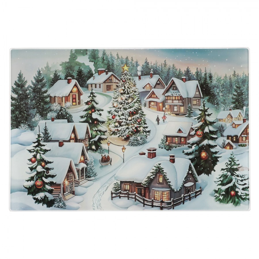 Доска разделочная 30*20*0.4см ЗИМНИЙ ПЕЙЗАЖ стекло/ф/VETTA