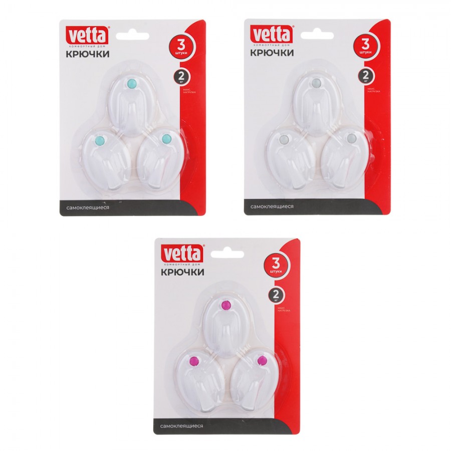 Крючки самоклеящиеся 3шт на блистере/WF-250/ ф/VETTA