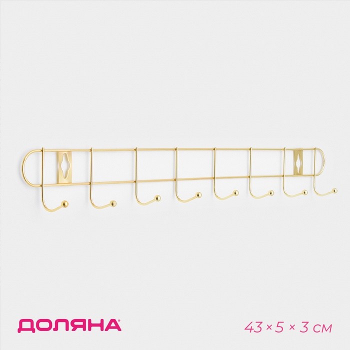 Вешалка настенная 8крючков Доляна Лайт Золотая/43×5×3см/ ф/Доляна