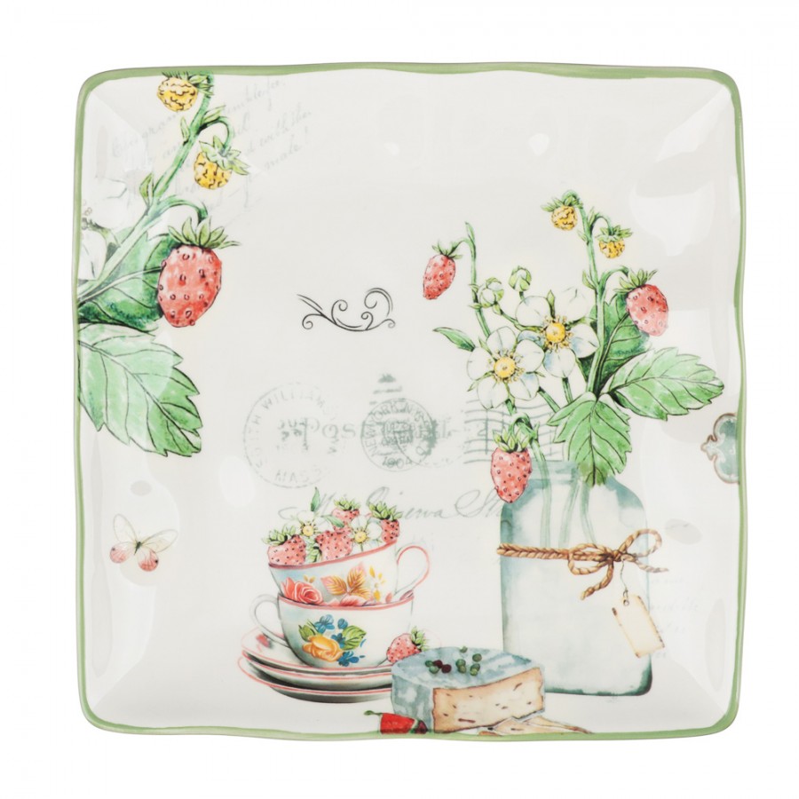 Блюдо квадратное 22*22*3см Земляника керамика/VETTA