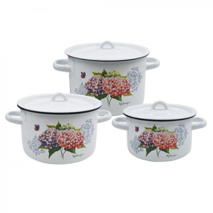 Набор кастрюль 3пр Розовая гортензия 1С33/ф/Череповец
