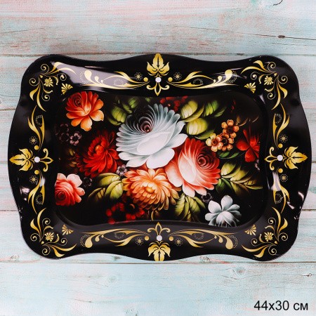 Поднос прямоугольный 44х30см Букет Черный Металл Эмаль/4578/ф/ГТ