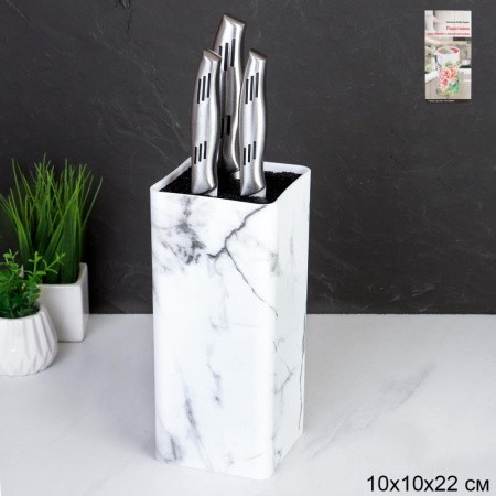 Подставка для ножей 22х10см Квадрат Моамор Белая/PPK600/ ГТ