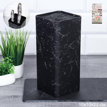 Подставка для ножей 22х10см Квадрат Мрамор Черная/PPK700/ГТ