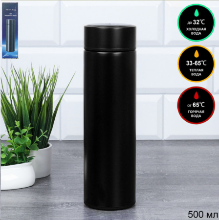 Термос 0,5л с датчиком тепла Черный/FRT-587/304/ф/ГТ
