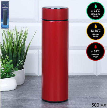 Термос 500мл с датчиком тепла/FRT-794/Термобутылка Красный/ф/ГТ