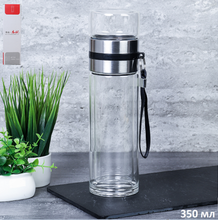 Термос для заваривания чая с ситом 350 мл двойное стекло / HYFL5369 /ф/ ГТ
