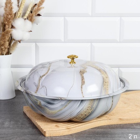 Чаша-салатник 2л эмаль с крышкой металл БЕЛЫЙ МРАМОР/WW-458/ф/ГТ