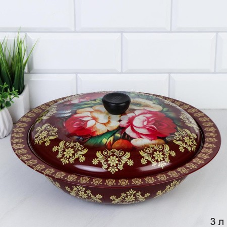 Чаша-салатник 3л эмаль с крышкой металл/ER-528 /ф/ГТ