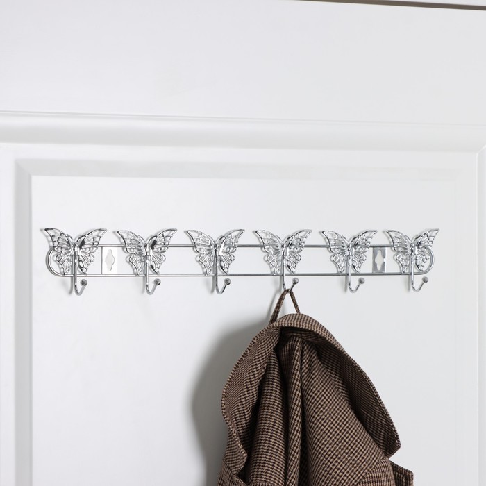 Вешалка настенная 6 крючков Бабочка 34.5×3×6.5 см серебряная/ф/Доляна