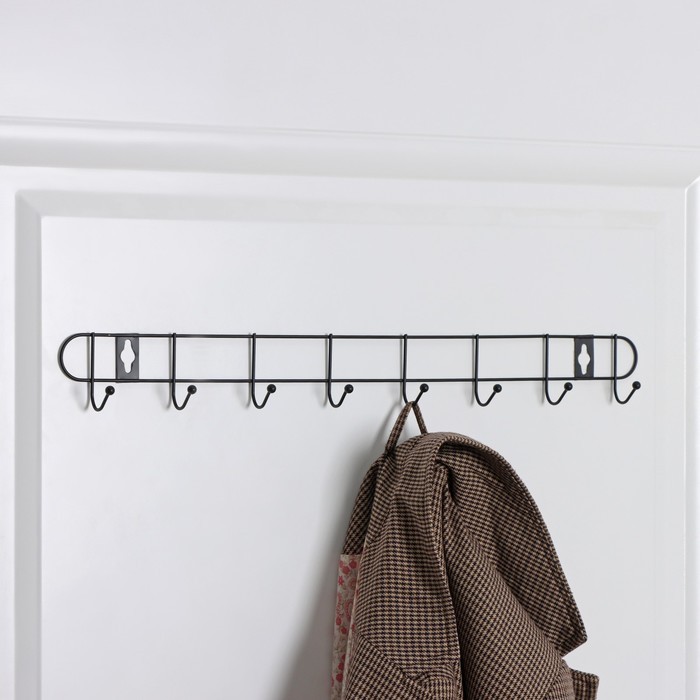 Вешалка настенная 8крючков Лайт 43×5×3 см чёрная/ф/Доляна