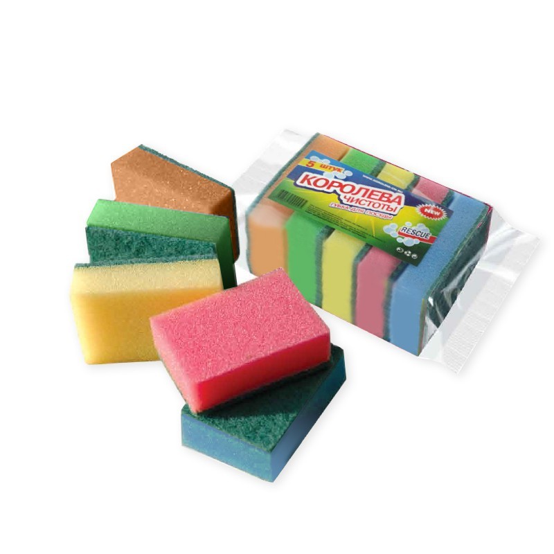 Губка для посуды 5шт МегаМакс КОРОЛЕВА ЧИСТОТЫ/ф/ПП