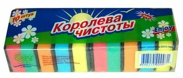Губка для посуды 10шт Помощница по хозяйству КОРОЛЕВА ЧИСТОТЫ/уп27/ф/ ПП
