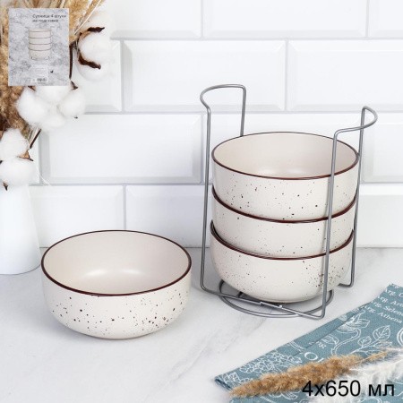 Бульонницы 4шт на МП Ручная работки Точки шоколад /BS4/1500/ф/ГТ