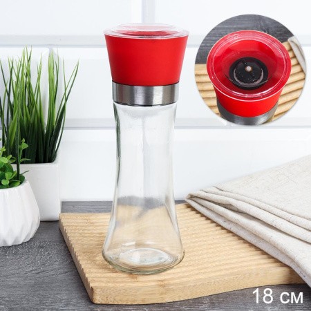 Мельница для специй и соли 19см с крышкой Красная/W-457-R/ф/ ГТ