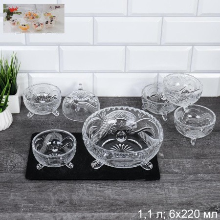 Салатник 7предметов набор Стекло/1000мл 6x220мл/SPS024/L7/ф/ГТ