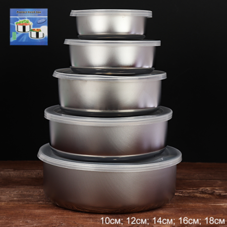 Салатники с крышкой 5 предметов Нерж/16-308/ф/ГТ
