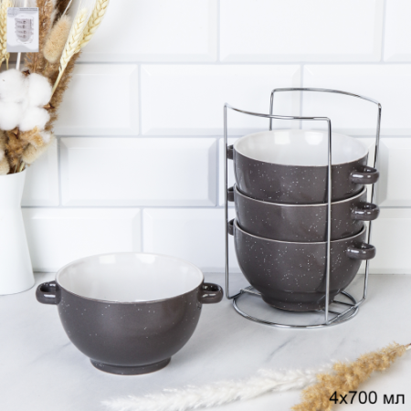 Бульонница с ручками 4штуки на МП ЧЕРНЫЙ/RT-653/ф/ГТ