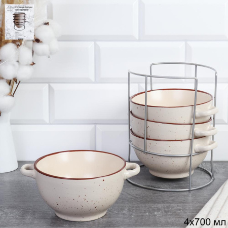 Бульонницы нр 4шт на МП Ручная работа Точки шоколад/BLS4/1500/ф/ГТ