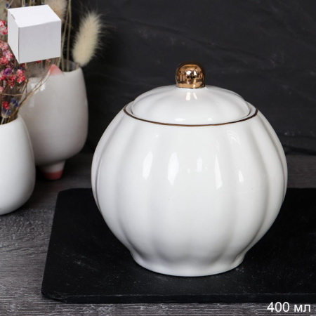 Сахарница 400мл Белая Золото фарфор/ FY24001/ф/ГТ