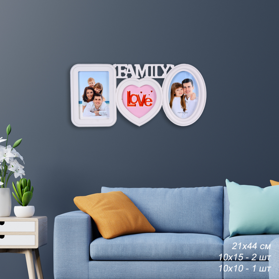 Фоторамка коллаж Семья 3фото 21*44см Белая/5307/ф/ ГТ