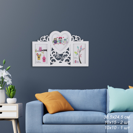 Фоторамка коллаж Семья 3фото Белая/073/ф/ ГТ