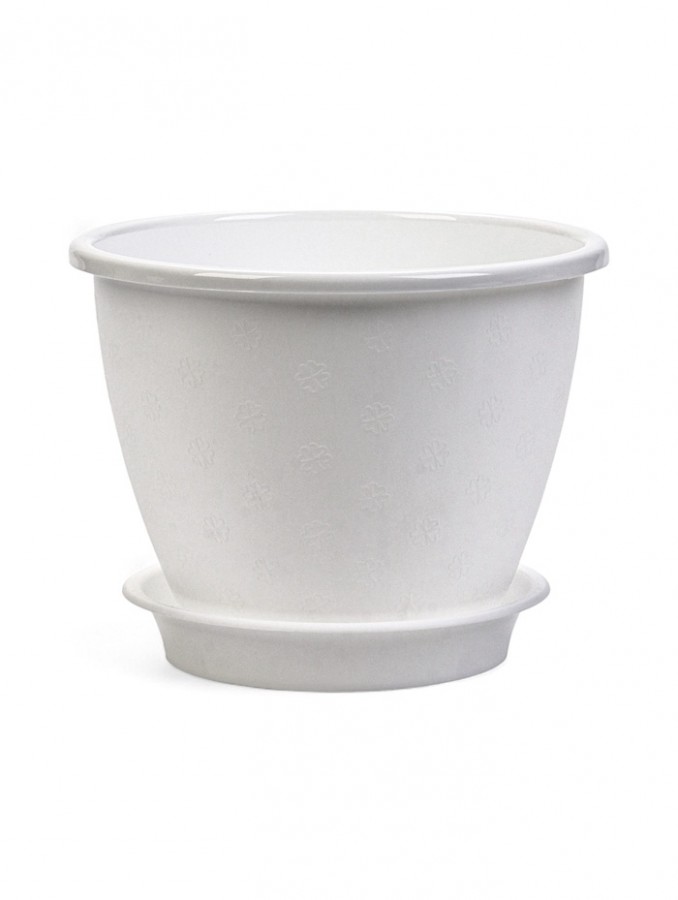 Кашпо с поддоном Цветочек 2.1л d18см Белый пластик/ф/Доляна