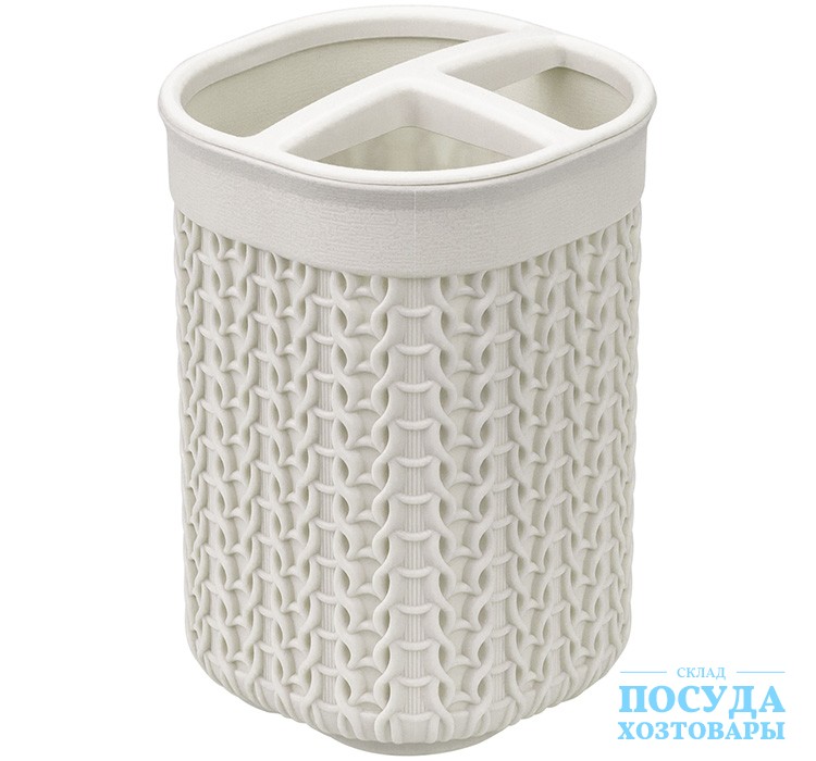 Подставка для зубных щеток ВЯЗАНИЕ БЕЛЫЙ РОТАНГ/ф/ М-Пластика