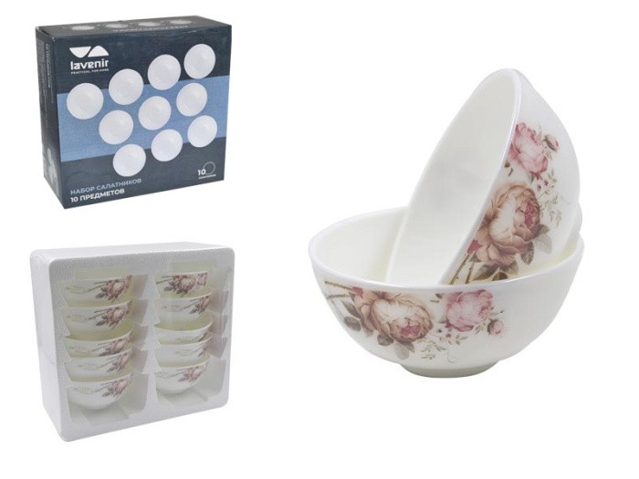 Набор салатников 10шт ЧАЙНЫЕ РОЗЫ Стеклокер/10PCS YF20032/ КК/Ф