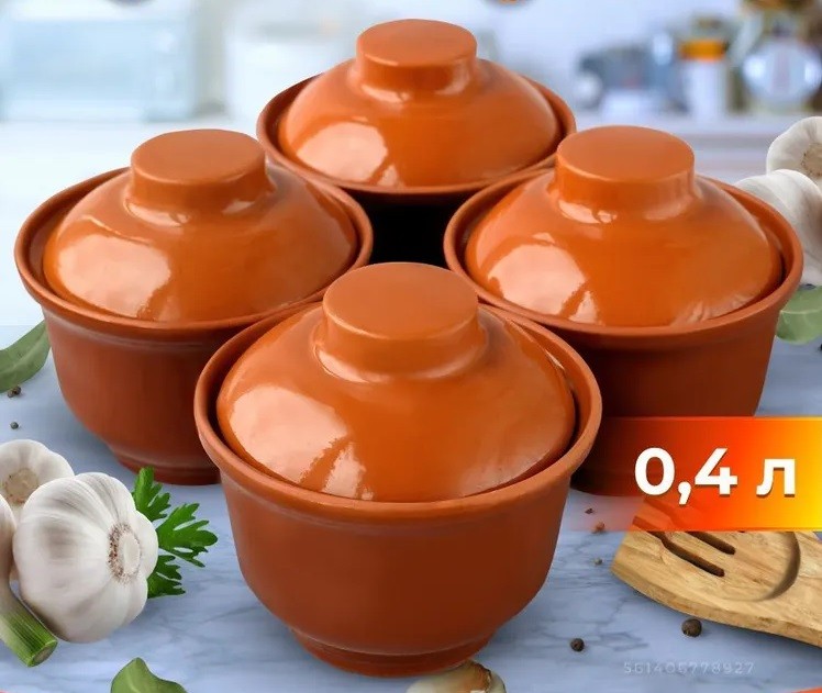 Горшок под жаркое 4шт ЗАСТОЛЬЕ 0,4л Керамика / Кунгур