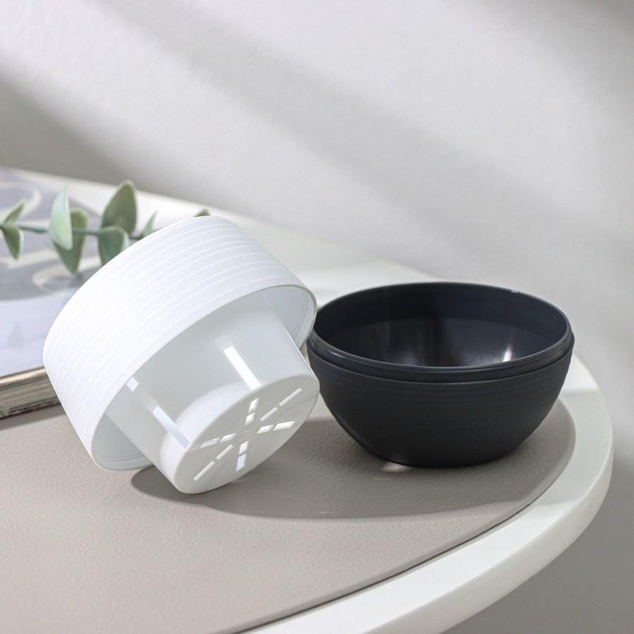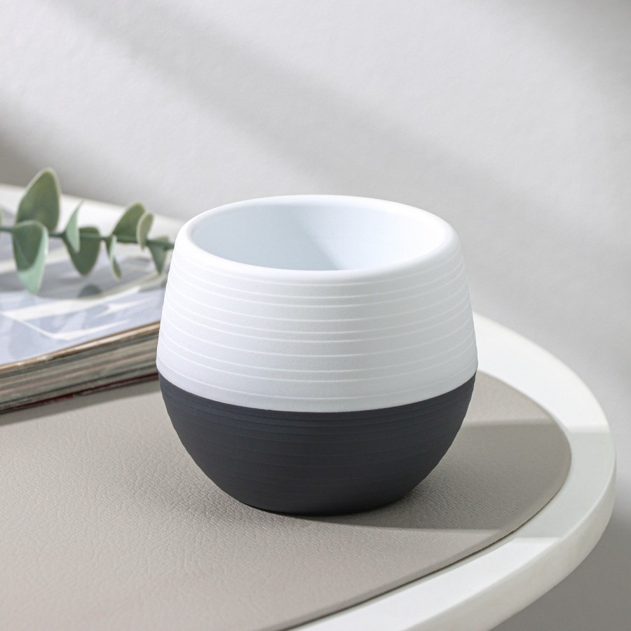 Кашпо ЯПОНИЯ 125мл d8*h6,5 с поддоном БЕЛЫЙ-ГРАФИТОВЫЙ/ф/ Доляна