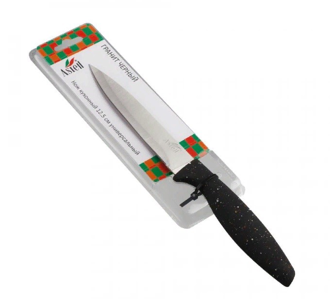Нож кухонный 12,5см Универсальный с пласт ручкой ГРАНИТ ЧЕРНЫЙ/ Катунь